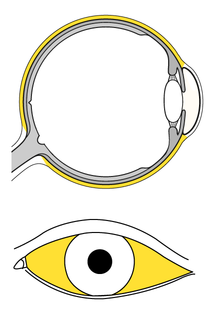 The outer coat of the eyeball that forms the visible white of the eye and surrounds the optic nerve at the back of the eyeball. The sclera acts as the tough outer layer to protect the eye from injury.